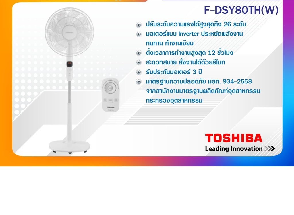 พัดลมโตชิบาตั้งพื้น F-DSY80TH(W)